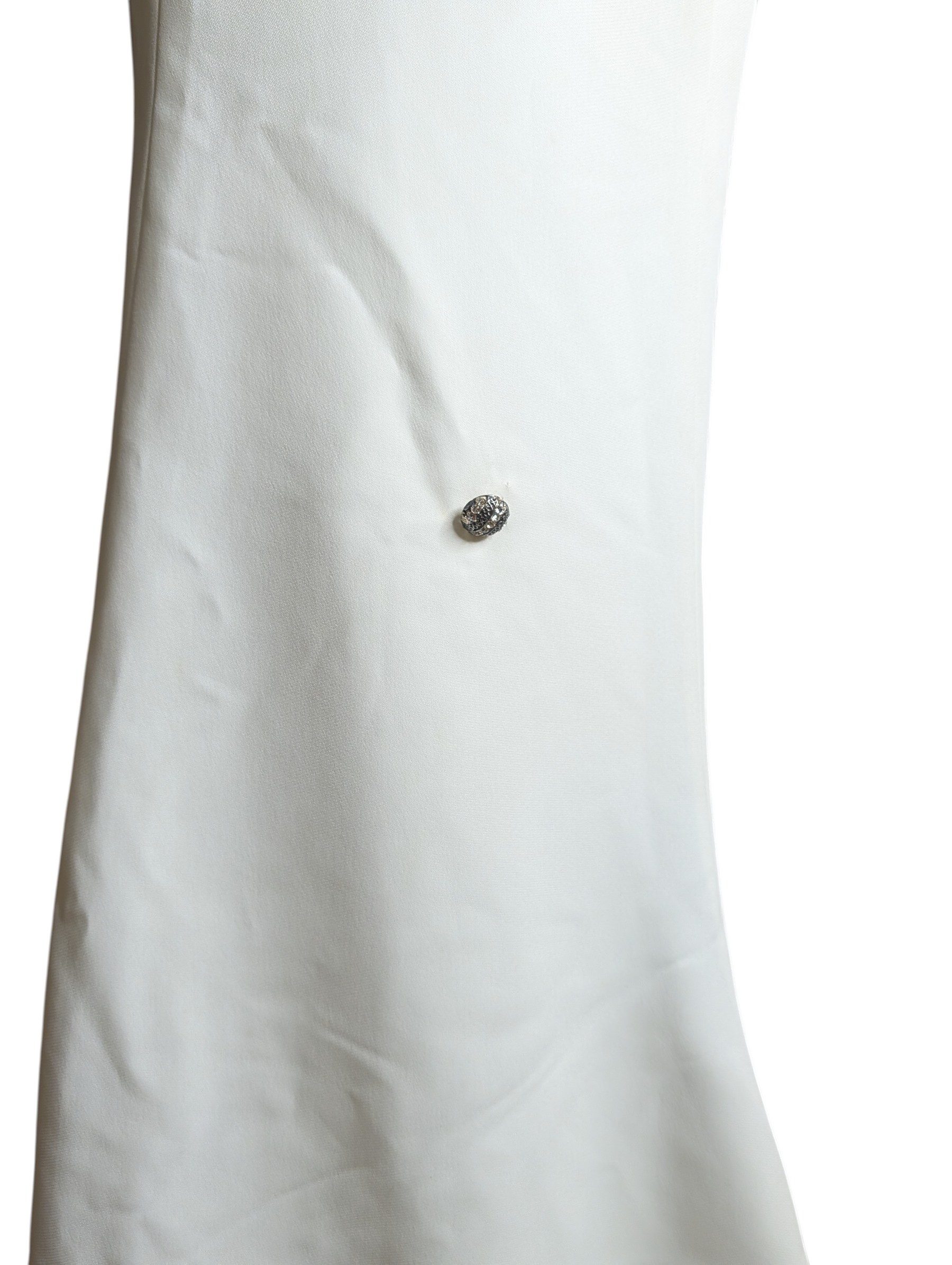 Finished with a full row of fabric-covered buttons down the back, this gown exemplifies couture-level craftsmanship and refined romantic design. Ideal for brides seeking a unique vintage wedding dress, collector-quality designer bridalwear, or editorial styling.