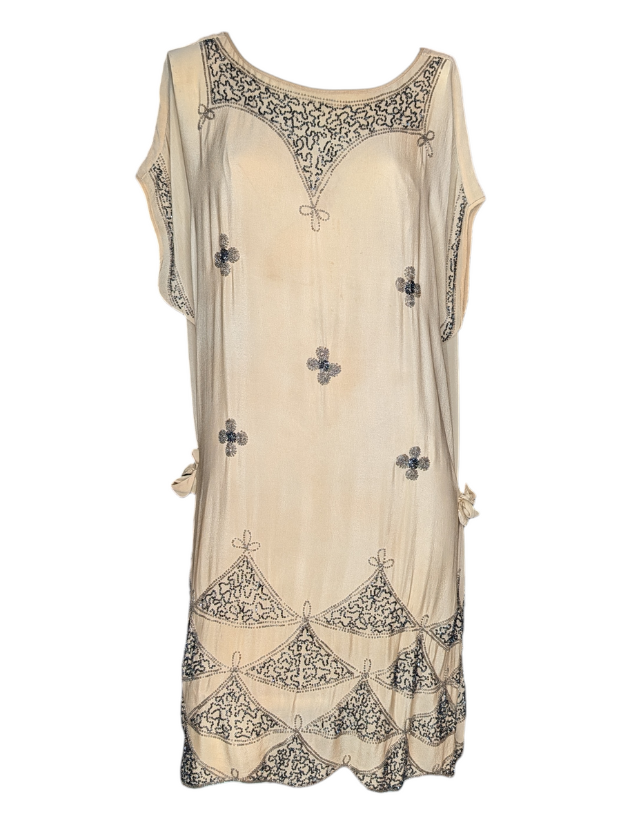 1920s Quatrefoil Beaded Flapper Gown